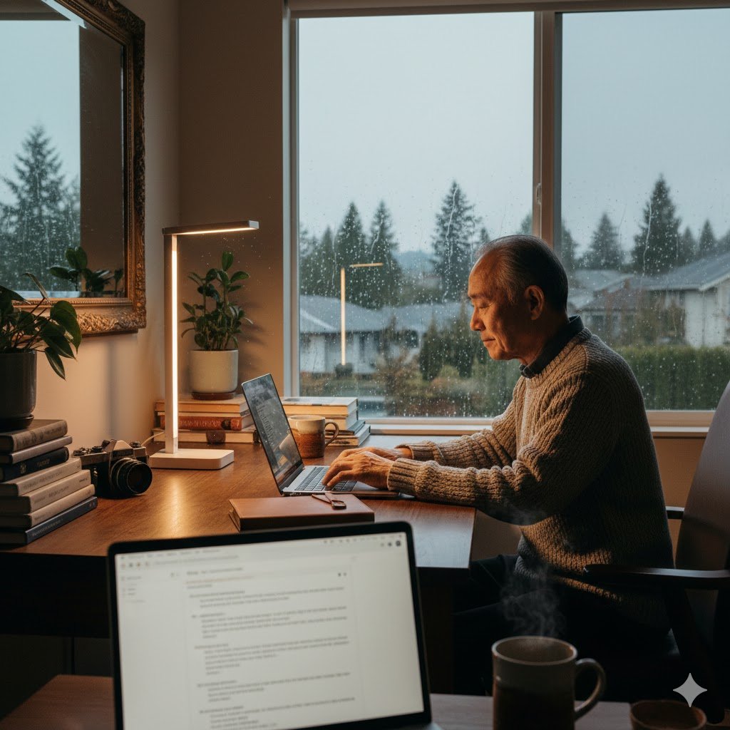 “Winter in Vancouver, Canada, is notoriously rainy and the skies are often grey and overcast. My study, in particular, has a small window that keeps the room dim and gloomy even during the day. At 71 years old, spending the entire day in front of a laptop writing blog posts has started to take a toll on my eyes, and I found myself getting fatigued much faster.