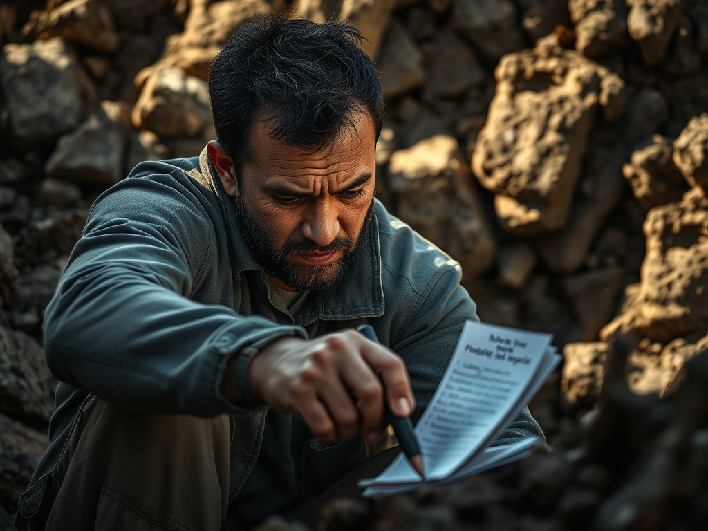 A person working on something meaningful under difficult conditions, with symbols of purpose outweighing comfort.