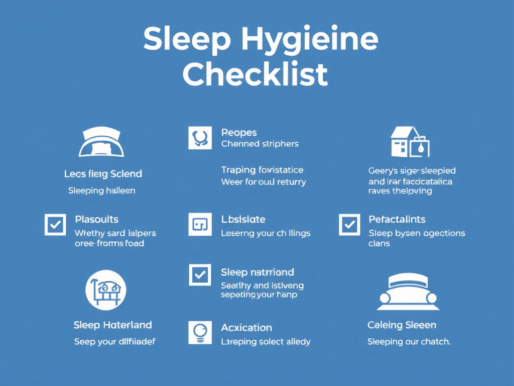 “Sleep hygiene checklist visual, minimal icons, calming colors”