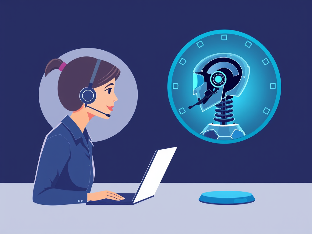 Old phone handset dissolving into chatbot interface, modern flat design